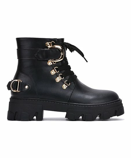 These ankle boots are crafted with a buckle accent and lace-up design.