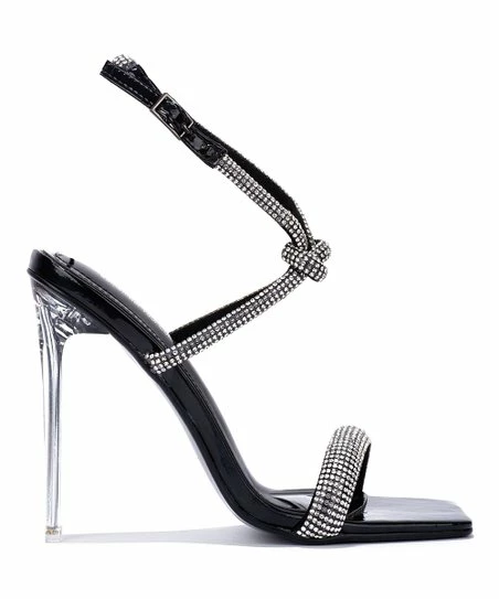 Add a hint of glamour to your night-out looks with this pair of sandals featuring rhinestone-accent knot straps and a tall metallic heel.