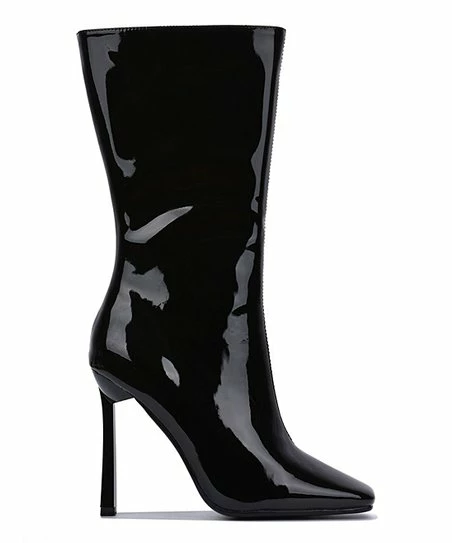 March to a stylish beat in these stiletto-heel booties serving up a pointed toe and a glossy finish.