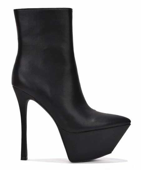 Raise your style profile with the tall stiletto heel and fierce, streamlined shape of these platform booties.