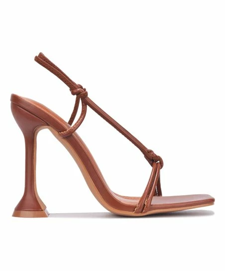 These heeled sandals are crafted with a knot-accented strap and square toe design.