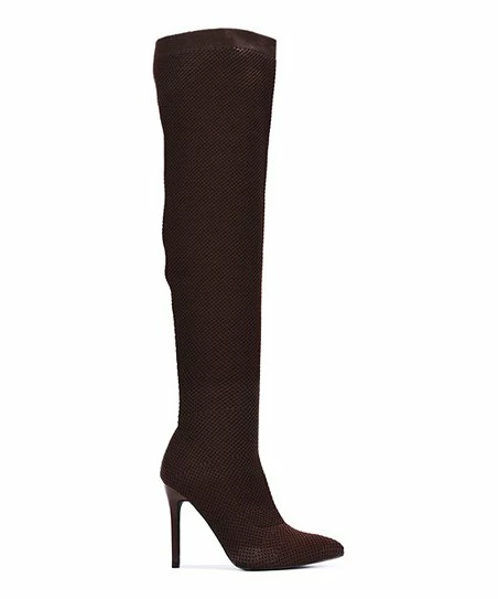 Take a stylish stance in these pointed-toe boots featuring a stretchy knit shaft and an over-the-knee silhouette.
