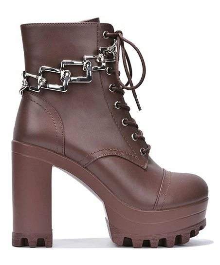 March to a stylish beat in these heeled booties serving up a lace-up design with a flashy chain detail and a lug sole providing grip underfoot.