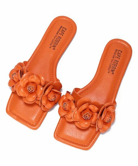 These modern sandals offer an edgy square-toe style and an appealing floral band ready for warm-weather days.