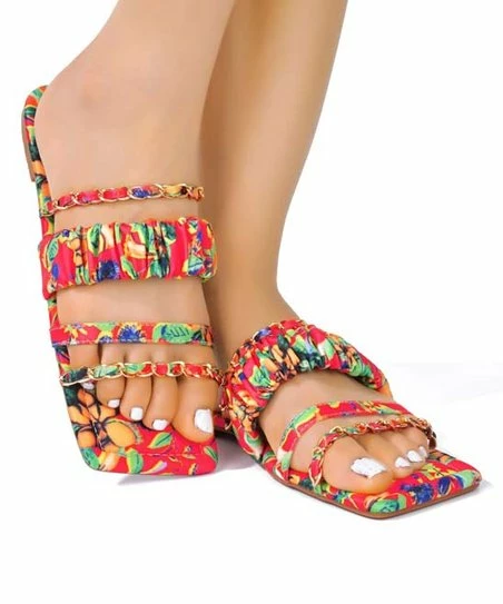 Add chic style to your look in these strappy sandals designed with a square toe and chain accents.