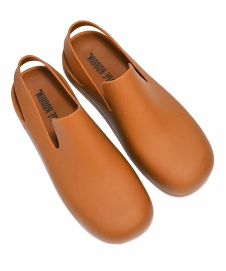 Soft rubber mules featuring a slingback strap for a comfortable fit.